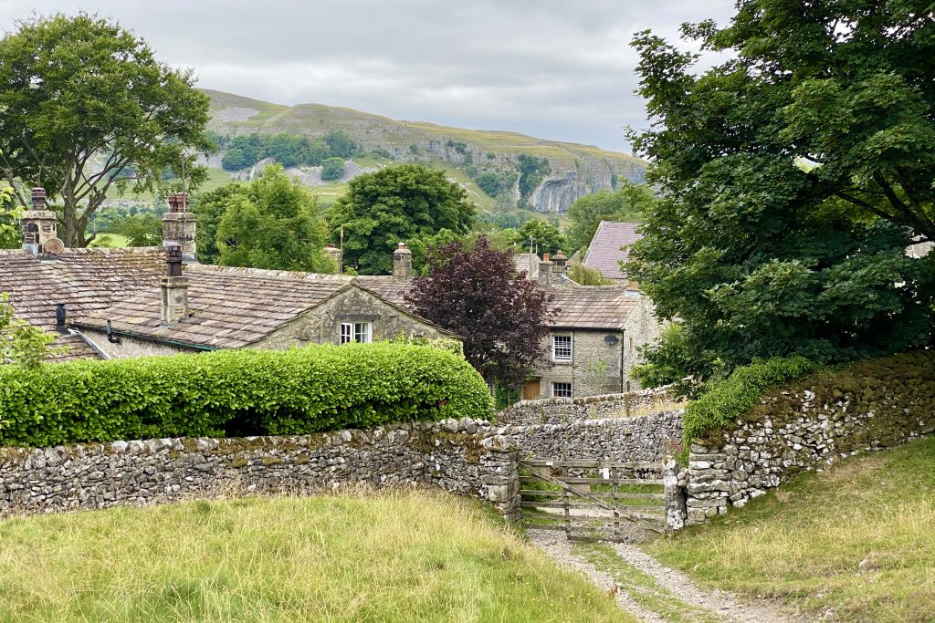 The village of Kilnsey and Kilnsey Crag as seen from Scot Gate Lane on Wassa Hill.